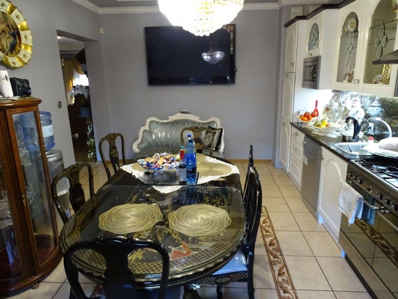 Zamontowane są okna PCV dwu kolorowe, które posiadają rolety zewnętrzne aluminiowe, a na podłogach znajdują się parkiety oraz kafle ceramiczne. Ściany i sufity są gipsowane. Kuchnia jest umeblowana meblami na wymiar i jest wyposażona w sprzęt agd.