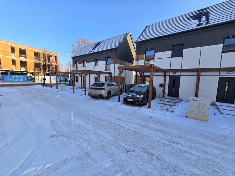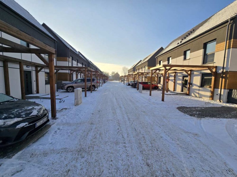 Budynki zaprojektowano w taki sposób, aby każdy z nich posiadał dwa miejsca postojowe, w tym jedno z wiatą oraz ogród o powierzchni około 40 m2 znajdujący się w tylnej części posesji. Części wspólne osiedla utwardzone zostaną kostką brukową oraz zaprojektowano oświetlenie dla całego kompleksu. Całe osiedle zaprojektowano w sposób, który wyróżnia się od typowej zabudowy a powtarzalność poszczególnych budynków tworzy jedną spójną całość.