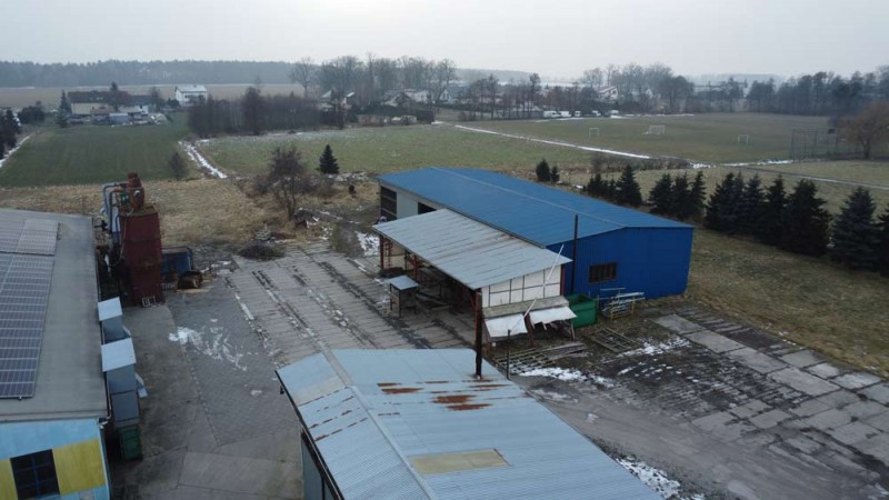 Teren jest ogrodzony i zagospodarowany, wjazd na posesję, parking, plac manewrowy utwardzone zostały betonową kostką. , Nieruchomość ta jest idealna na prowadzenie działalności służącej do obróbki drewna ale może również służyć do innych celów produkcyjnych.