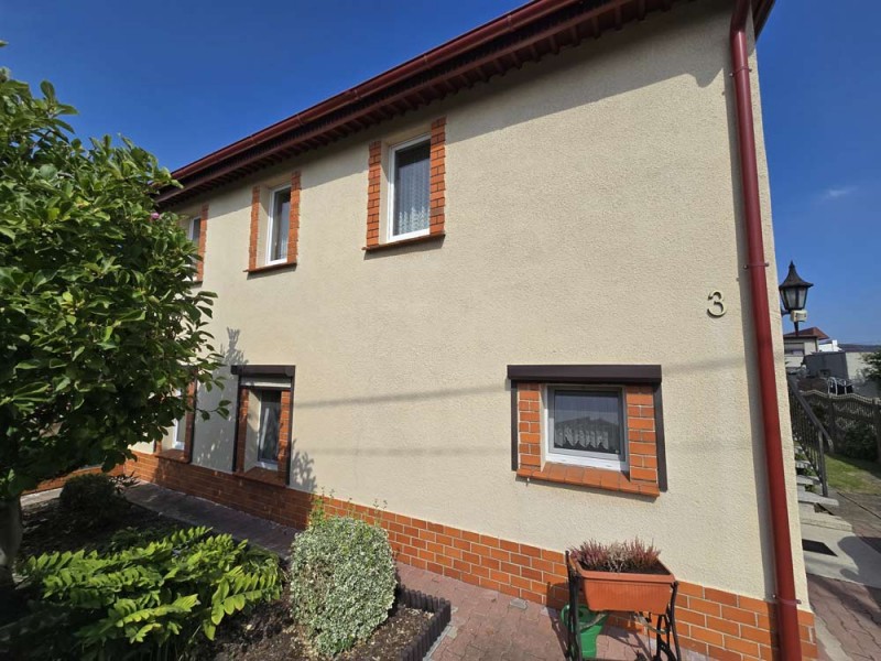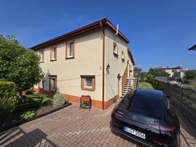 Dom jest przytulny, czysty i zadbany. Zamontowane są okna z profili PCV firmy Fenetra a część z nich posiada rolety zewnętrzne. Na podłogach znajdują się parkiety i kafle ceramiczne a ściany są gipsowane. Wszystkie drzwi wejściowe są antywłamaniowe. Podłogi i ściany łazienek zostały pokryte płytkami ceramicznymi. Sufity są częściowo wykończone drewnianymi elementami dekoracyjnymi. Zamontowana jest nowa armatura sanitarna. Centralne ogrzewanie i wodę ciepłą zasila nowoczesny kocioł gazowy dwu funkcyjny firmy Ariston z zasobnikiem firmy Kospel o pojemności 140 litrów, instalacja i grzejniki są stalowe. Istnieje możliwość zakupu stylowych mebli znajdujących się w budynku.