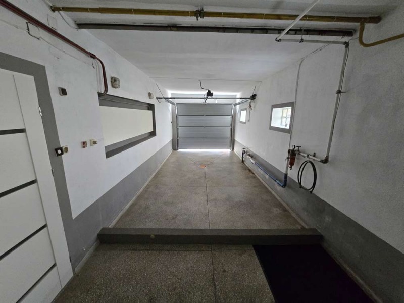 W pierwszym lokalu na parterze znajdują się dwie sypialnie, łazienka z prysznicem, korytarz, wiatrołap, kotłownia oraz duży garaż z pomieszczeniem gospodarczym o powierzchni 55,50 m2. Piętro obejmuje salon z kominkiem i wyjściem duży taras o powierzchni 53,50 m2, kuchnię spiżarnię i toaletę.