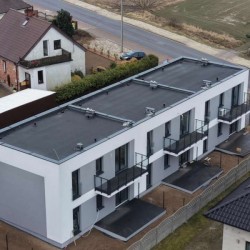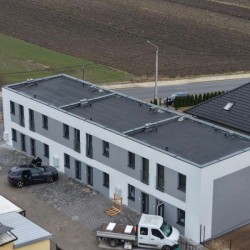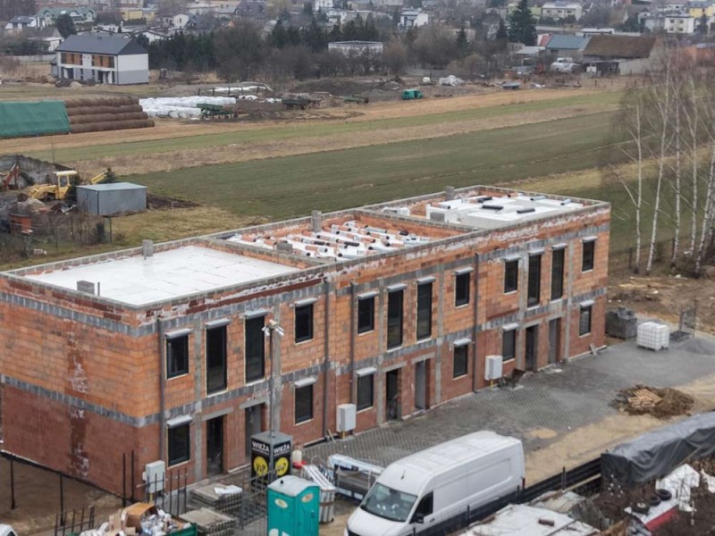 Inwestycja na tym etapie składa się z trzech segmentów budynków mieszkalnych dwu lokalowych. Każdy segment składa się z dwóch lokali mieszkalnych (jednego na parterze i jednego na piętrze). Są one usytuowane od strony zachodniej i wschodniej. Do mieszkań na parterze przynależą ogrody z tarasami. Niezależne wejścia do lokali zaprojektowano w elewacji frontowej każdego z segmentów. Do lokalu na piętrze prowadzi wydzielona klatka schodowa dostępna bezpośrednio z zewnątrz budynku, w celu zapewnienia Państwu prywatności. Budynek jest budynkiem piętrowym, niepodpiwniczonym, przykrytym dachem płaskim. Materiałem budowy jest pustak ceramiczny Porotherm, który jest docieplony zewnętrznie styropianem i pokryty tynkiem. Ściany wewnętrzne są wykończone tynkiem maszynowym.