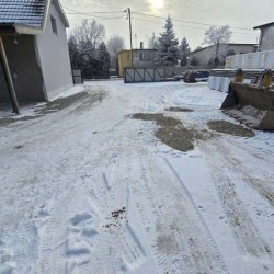Działka jest ogrodzona i zagospodarowana, jej front został ogrodzony płotem z płyt betonowych.