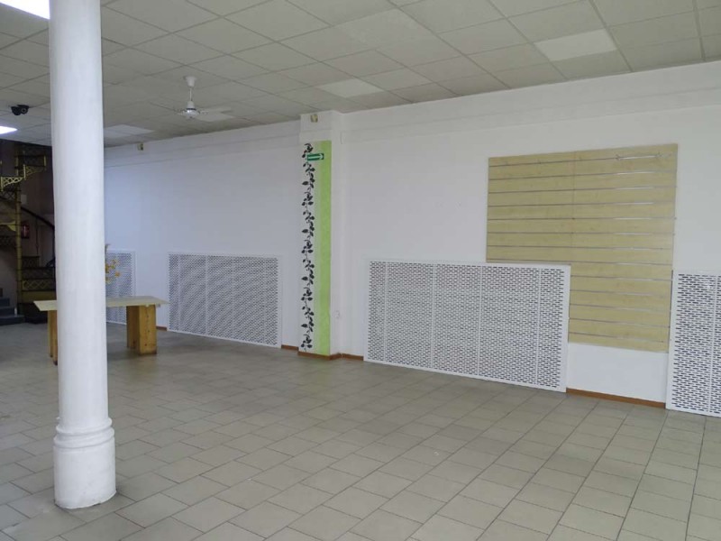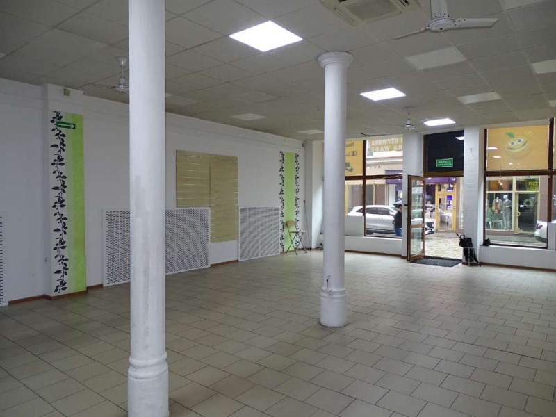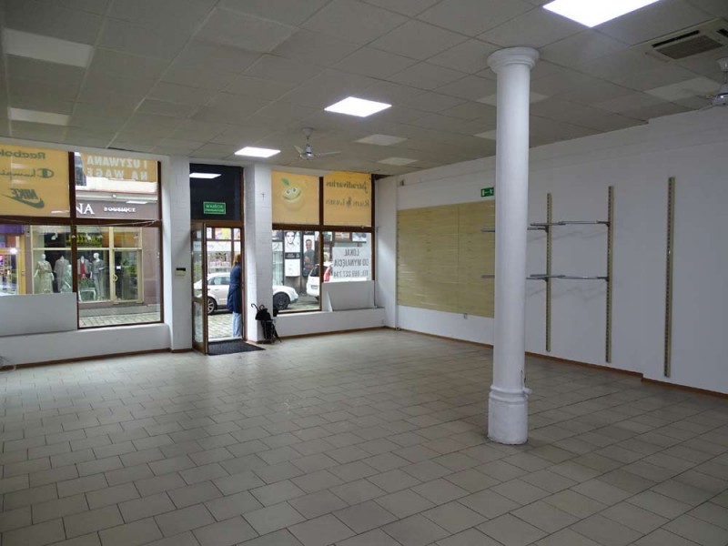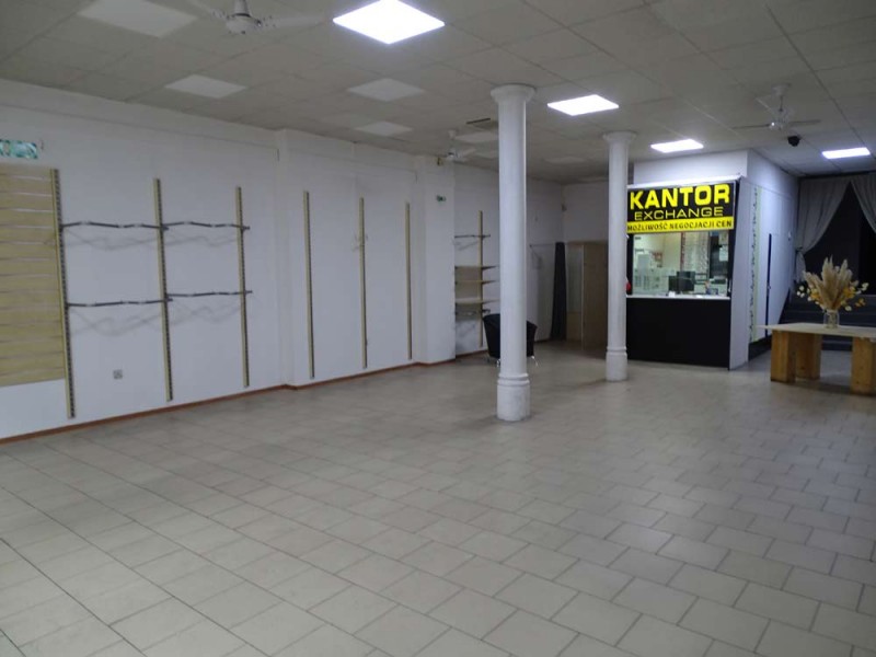 Lokal posiada powierzchnię 170 m2, wewnątrz mamy do dyspozycji salę główną, cztery pomieszczenia (zaplecze socjalno - magazynowe) oraz toaletę. Podłogi wyłożone są kaflami ceramicznymi, lokal posiada dużą witrynę wystawienniczą. Centralne ogrzewanie zasila piec na miał i węgiel. Lokal jest dostępny od zaraz.