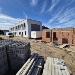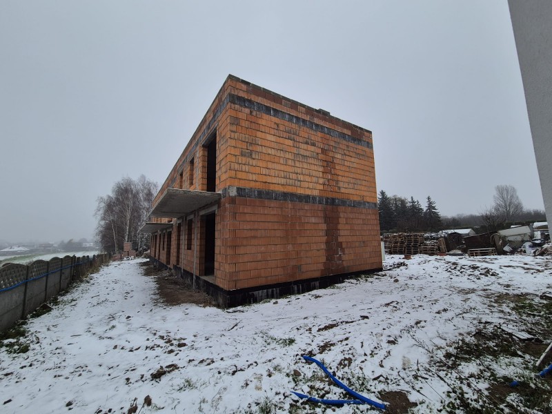 Inwestycja na tym etapie składa się z trzech segmentów budynków mieszkalnych dwu lokalowych. Każdy segment składa się z dwóch lokali mieszkalnych (jednego na parterze i jednego na piętrze). Są one usytuowane od strony zachodniej i wschodniej. Do mieszkań na parterze przynależą ogrody z tarasami. Mieszkania skrajne posiadają większe ogrody. Niezależne wejścia do lokali zaprojektowano w elewacji frontowej każdego z segmentów. Do lokalu na piętrze prowadzi wydzielona klatka schodowa dostępna bezpośrednio z zewnątrz budynku, w celu zapewnienia Państwu prywatności. Budynek jest budynkiem piętrowym, niepodpiwniczonym, przykrytym dachem płaskim. Materiałem budowy jest pustak ceramiczny Porotherm, który jest docieplony zewnętrznie styropianem i pokryty tynkiem. Ściany wewnętrzne są wykończone tynkiem maszynowym. Teren wokół budynku zostanie zagospodarowany, parking i wjazd zostaną utwardzone betonową kostką.