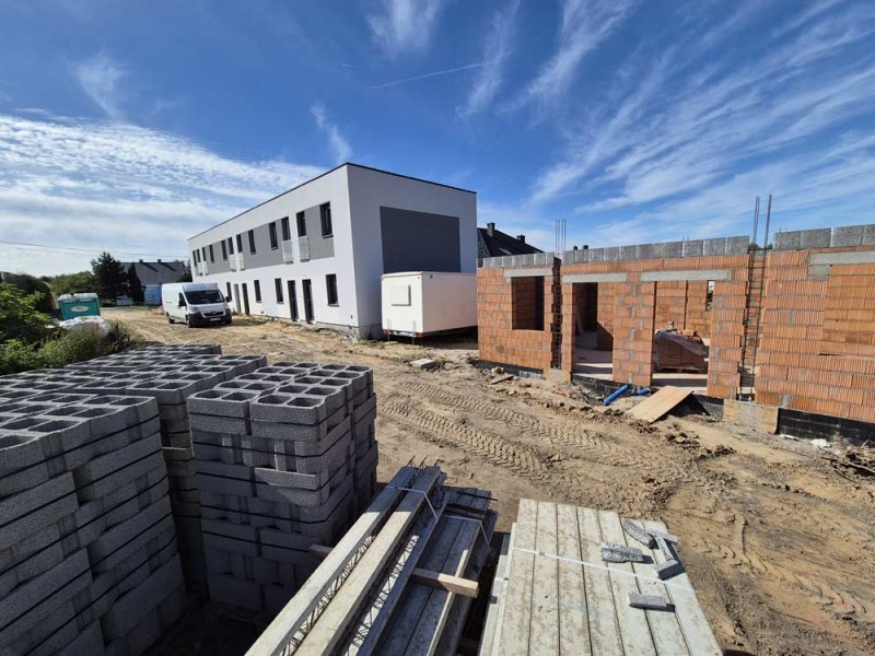 Inwestycja na tym etapie składa się z trzech segmentów budynków mieszkalnych dwu lokalowych. Każdy segment składa się z dwóch lokali mieszkalnych (jednego na parterze i jednego na piętrze). Są one usytuowane od strony zachodniej i wschodniej. Do mieszkań na parterze przynależą ogrody z tarasami. Niezależne wejścia do lokali zaprojektowano w elewacji frontowej każdego z segmentów. Do lokalu na piętrze prowadzi wydzielona klatka schodowa dostępna bezpośrednio z zewnątrz budynku, w celu zapewnienia Państwu prywatności. Budynek jest budynkiem piętrowym, niepodpiwniczonym, przykrytym dachem płaskim. Materiałem budowy jest pustak ceramiczny Porotherm, który jest docieplony zewnętrznie styropianem i pokryty tynkiem. Ściany wewnętrzne są wykończone tynkiem maszynowym.