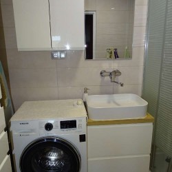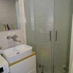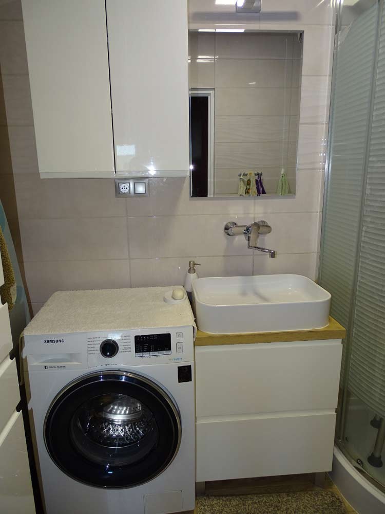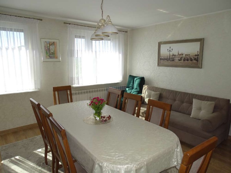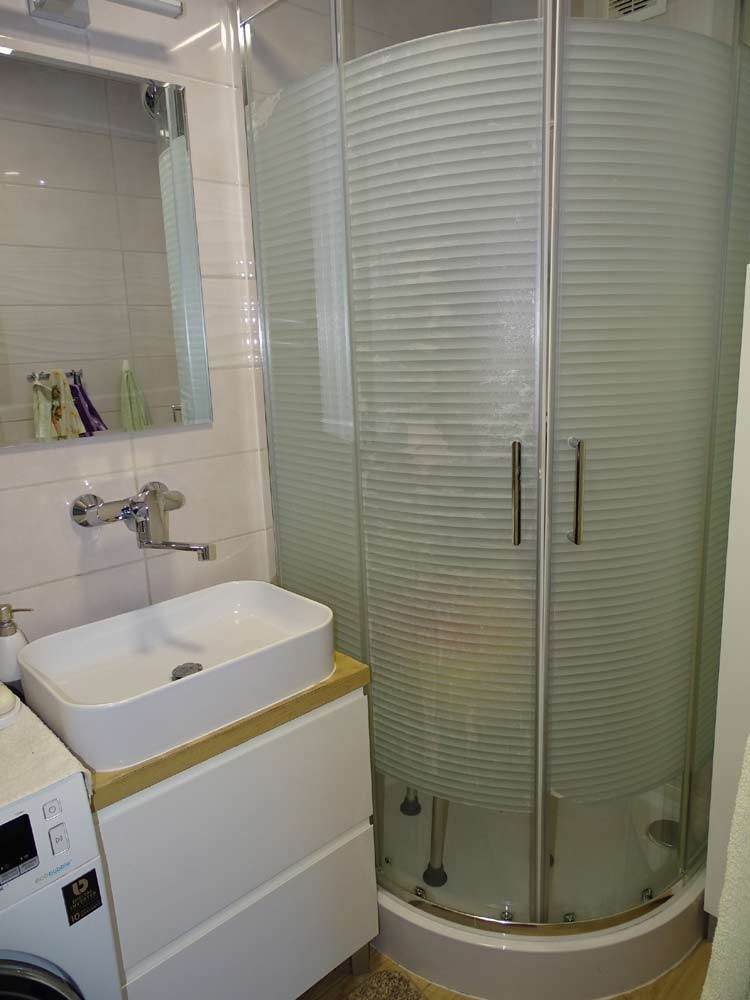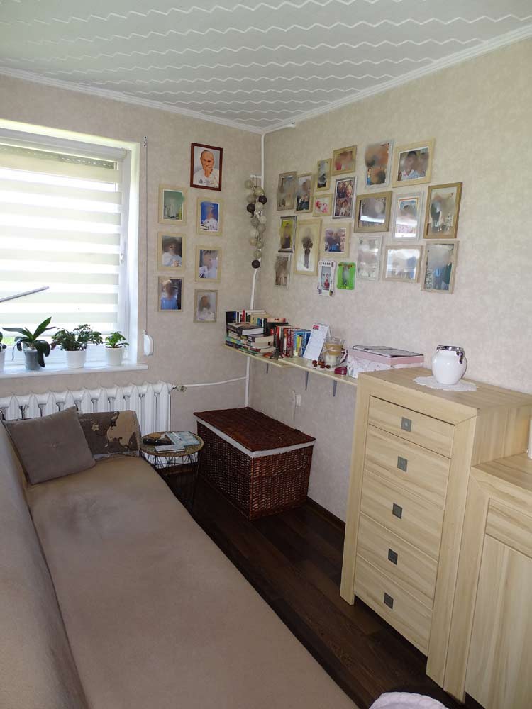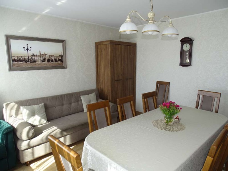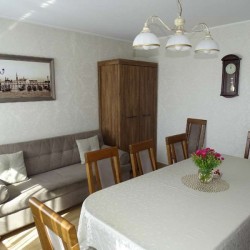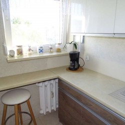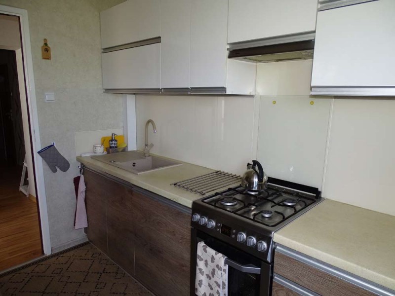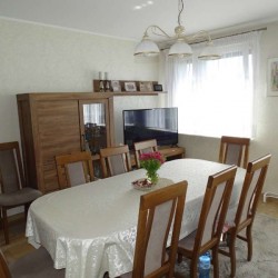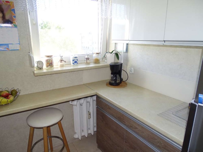 Lokal jest czysty, zadbany i przytulnie urządzony. Zamontowane są okna z profili PCV z roletami zewnętrznymi aluminiowymi a na podłogach znajdują się panele i kafle ceramiczne. Wymieniona został stolarka drzwiowa wewnętrzna oraz drzwi wejściowe do lokalu, a ściany pokryto tapetami. Duża, widna kuchnia została umeblowana meblami na wymiar, posiada sprzęt gospodarstwa domowego - płytę gazową, piekarnik elektryczny, pochłaniacz pary oraz zmywarkę. Ściany i podłoga łazienki są wyłożone w płytkach ceramicznych, zamontowano w niej kabinę prysznicową, umywalkę wraz z szafką oraz meble łazienkowe. Toaleta jest osobna. Korytarz został zabudowany pojemnymi szafami na wymiar. Centralne ogrzewanie i wodę ciepłą zasila ciepłownia miejska, większość grzejników wymieniono na aluminiowe.. Cena obejmuje zabudowę trwałą (meble kuchenne i zabudowę korytarza), sprzęt agd a pozostałe wyposażenie i umeblowanie jest w opcji. Przed budynkiem mamy do dyspozycji parking dla mieszkańców. Budynek położony jest w spokojnej okolicy otoczonej zielenią z dala od hałaśliwych ulic.