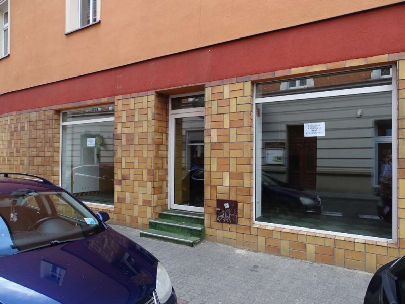 Lokal posiada powierzchnię 64 m2 i jest przystosowany do działalności gastronomicznej, jest również częściowo wyposażony. Wewnątrz mamy do dyspozycji salę główną, 3 pomieszczenia, kuchnię i dwie toalety. Podłogi wyłożone są kaflami ceramicznymi, lokal posiada dwie duże witryny wystawiennicze. Centralne ogrzewanie zasila ciepłociąg miejski a wodę podgrzewa bojler elektryczny. Lokal jest dostępny od zaraz.
