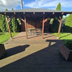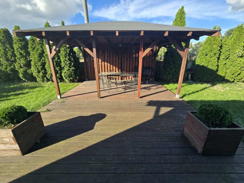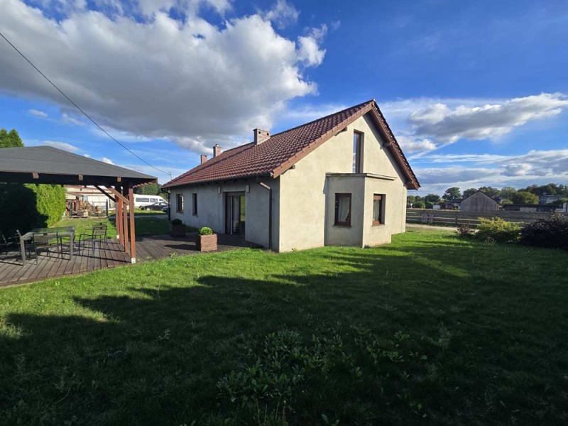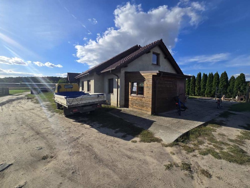Na terenie posesji znajdują się pomieszczenia z przeznaczeniem na działalność gospodarczą - hala wybudowana na konstrukcji drewnianej z betonową posadzką, której powierzchnia wynosi 200 m2 oraz zadaszona wiata wybudowana z płyt betonowych o powierzchni 100 m2. Przy domu wygospodarowano miejsce na wypoczynek i rekreację i tutaj mamy do dyspozycji zadaszoną altankę grillową, która jest położona na tarasie. Działka, której powierzchnia wynosi 4306 m2 jest ogrodzona. Nieruchomość została przyłączona do sieci energetycznej i wodnej a odprowadzenie ścieków odbywa się za pomocą szamba. Dogodny dojazd drogą asfaltową. Zapraszamy Państwa do kontaktu celem umówienia terminu prezentacji.