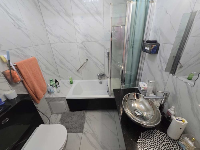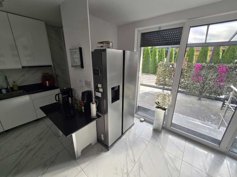 Zamontowane są wysokiej klasy okna z profili PCV z roletami zewnętrznymi aluminiowymi i roletkami wewnętrznymi dzień - noc a na podłogach znajdują się wielkoformatowe kafle ceramiczne. Salon jest klimatyzowany. Kuchnia została umeblowana meblami na wymiar, posiada zabudowany sprzęt gospodarstwa domowego - lodówko - zamrażarkę, płytę indukcyjną, piekarnik elektryczny, zmywarkę, pochłaniacz pary oraz filtr wody. Łazienka został wykończona w płytkach ceramicznych, zamontowano w niej wannę, geberit i umywalkę wraz szafką. Centralne ogrzewanie i wodę ciepłą zasila kocioł gazowy dwu – funkcyjny, jest to ogrzewanie podłogowe. Cena obejmuje zabudowę trwałą - meble kuchenne na wymiar wraz ze sprzętem agd, dwie pojemne szafy garderobiane na wymiar oraz trzy telewizory. Pozostałe umeblowanie będące na wyposażeniu mieszkania jest w opcji.