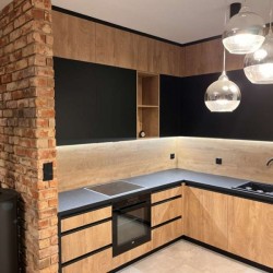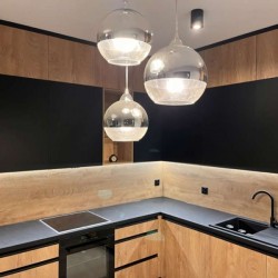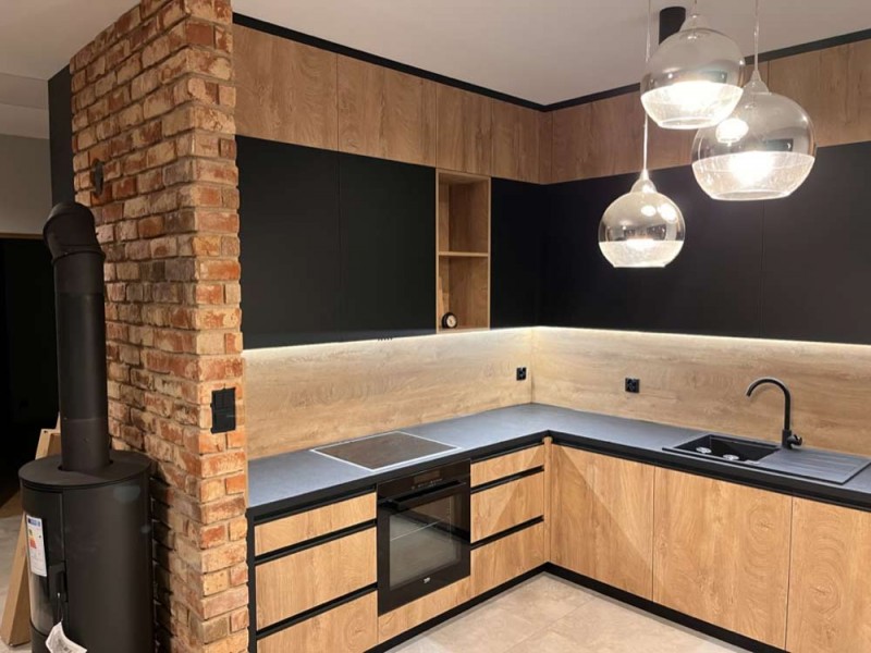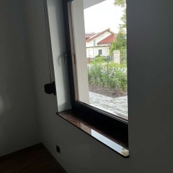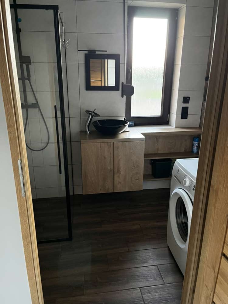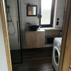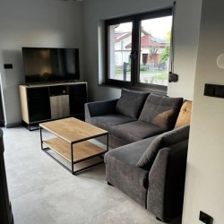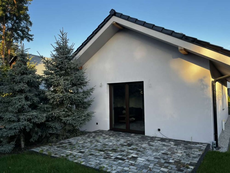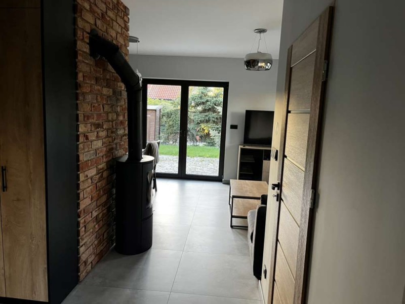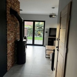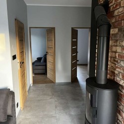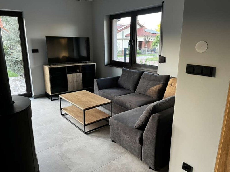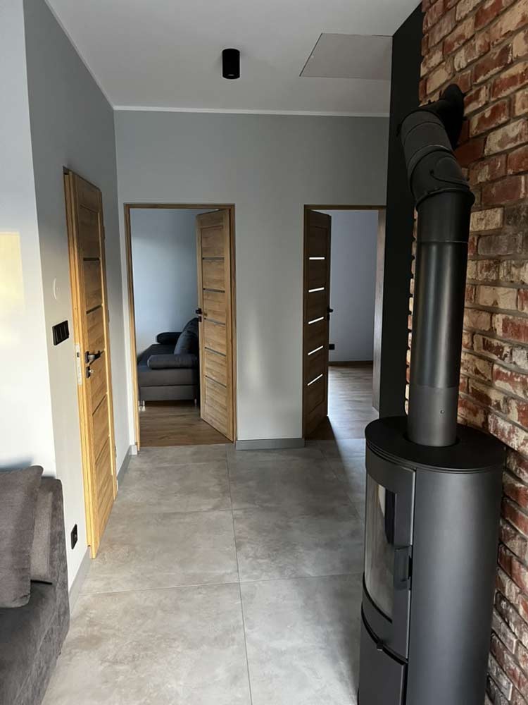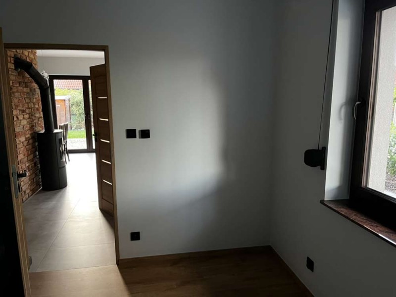 Dom jest wykończony w wysokim standardzie i nie wymaga nakładów finansowych. Wyposażony został w okna trzyszybowe Fenetra z roletami zewnętrznymi (balkonowe sterowane elektrycznie). Podłogi wykończono panelami oraz kaflami wielkoformatowymi, ściany są gipsowane. Kuchnia w zabudowie z kompletnym sprzętem AGD, łazienka z prysznicem, zabudową meblową i armaturą wysokiej jakości.