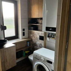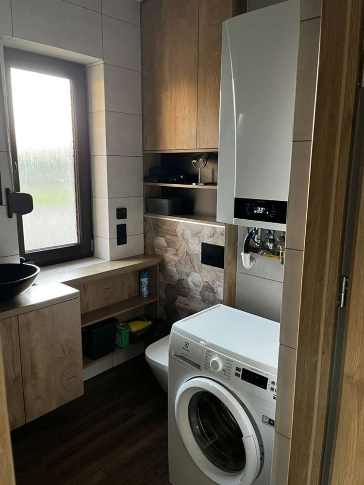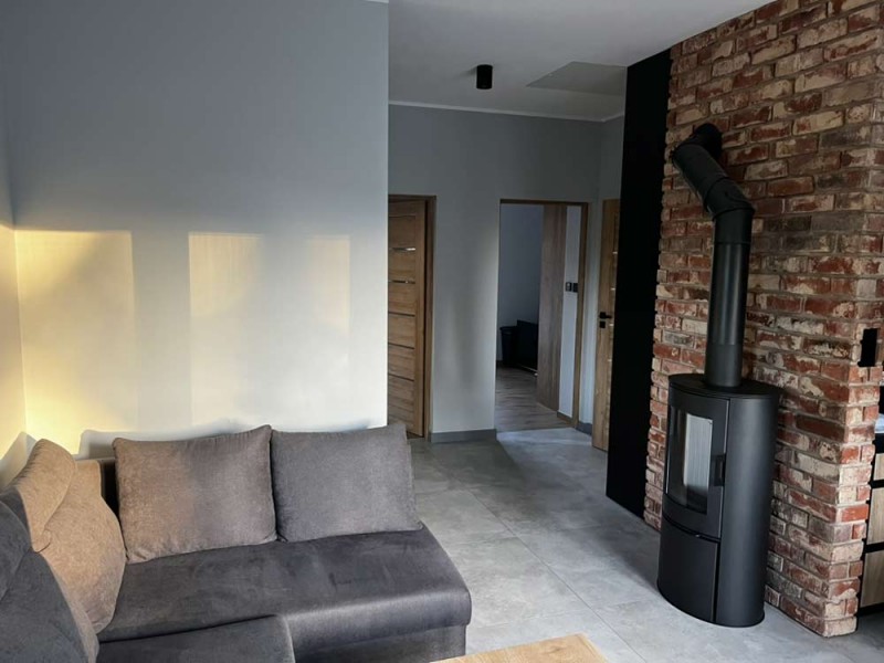 Ogrzewanie podłogowe zasilane jest nowoczesnym kotłem gazowym dwufunkcyjnym Brotje. Dodatkowym źródłem ciepła jest wolnostojący kominek w salonie. Cena obejmuje kompletne umeblowanie i wyposażenie.