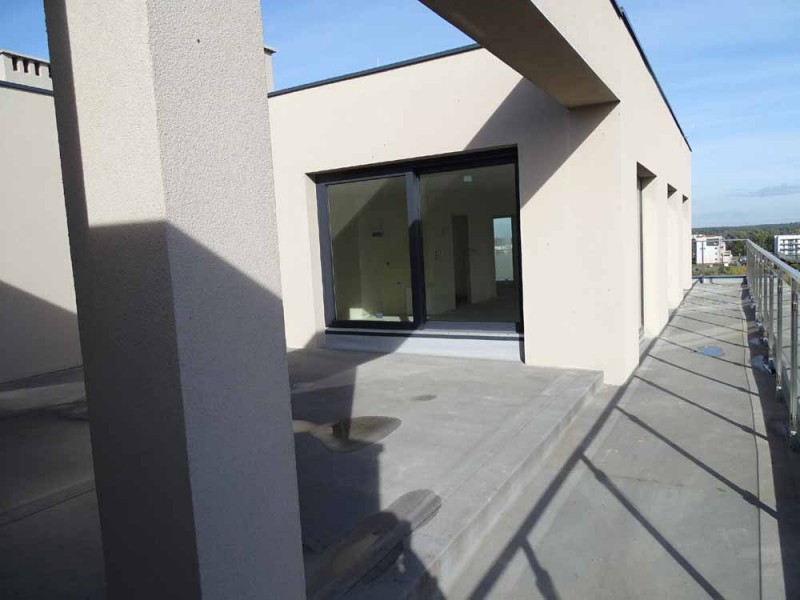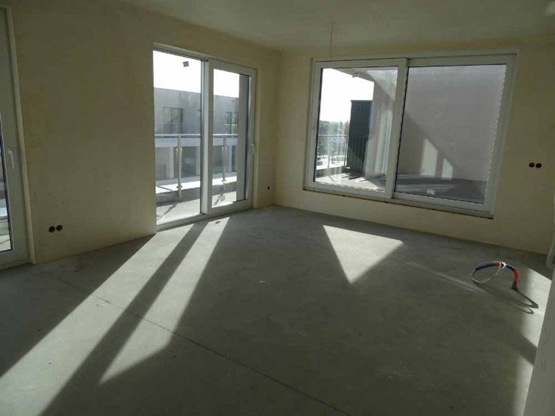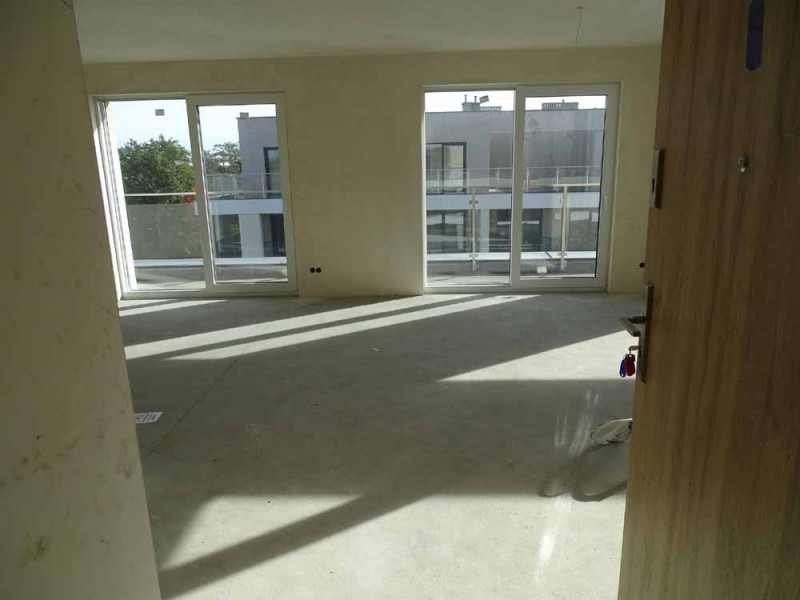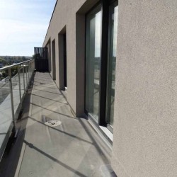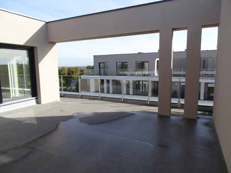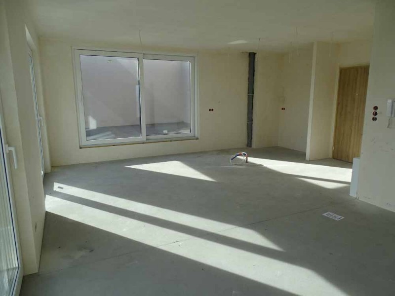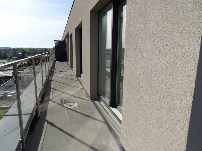 Mieszkanie posiada powierzchnię 61 m2, wewnątrz mamy do dyspozycji pokój dzienny z aneksem kuchennym, 2 sypialnie, przedpokój, łazienkę z toaletą oraz duży taras. Zamontowane są okna z profili PCV, 3 szybowe, przesuwne w systemie HST. Rozprowadzone zostały wszystkie instalacje a ściany zostały pokryte tynkiem maszynowym. Centralne ogrzewanie i wodę ciepłą zasila ciepłownia miejska. Mieszkanie usytuowane jest na ostatniej kondygnacji, od strony północnej i wschodniej. Na tej kondygnacji znajduje się urządzone własne miejsce wypoczynku - taras widokowy o powierzchni 72 m2.