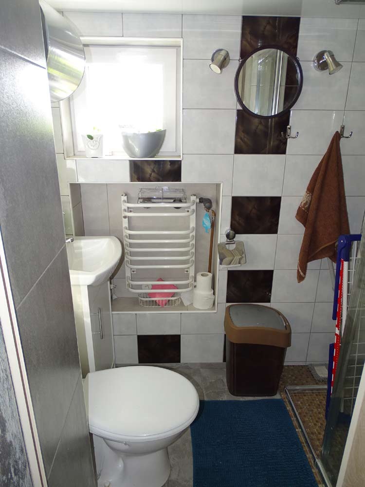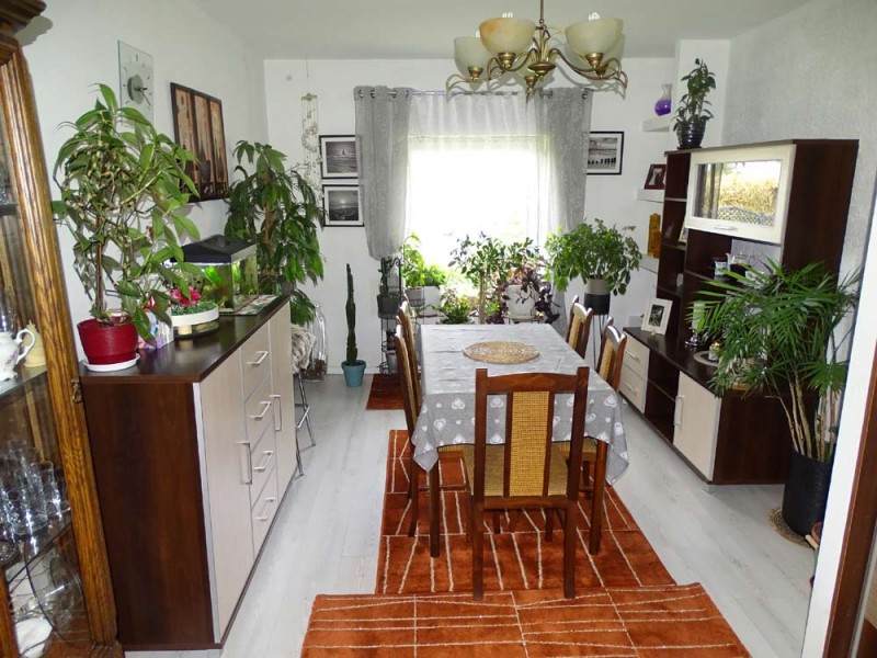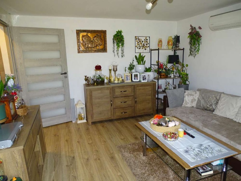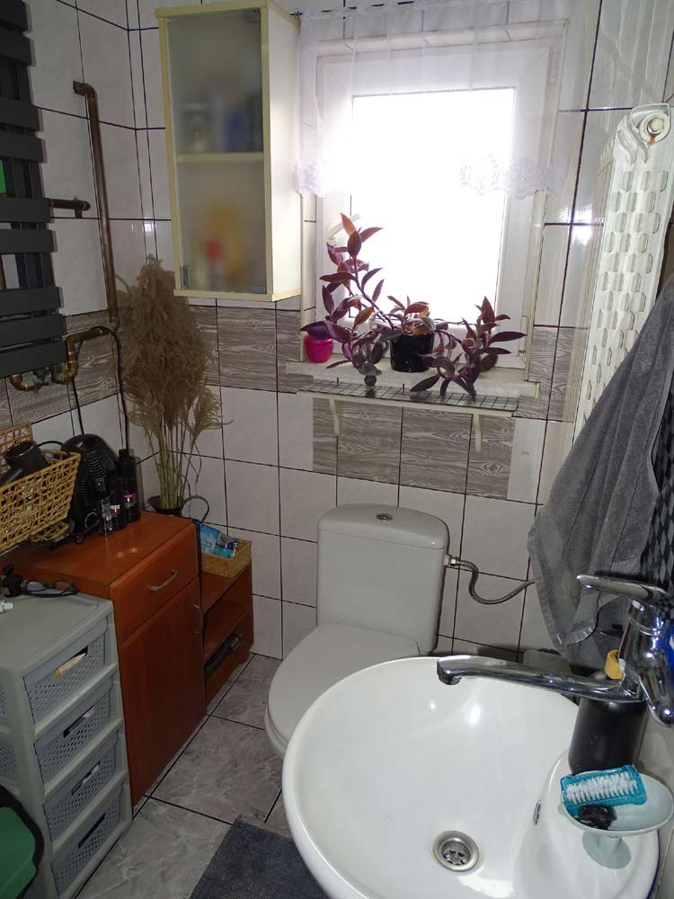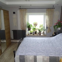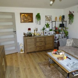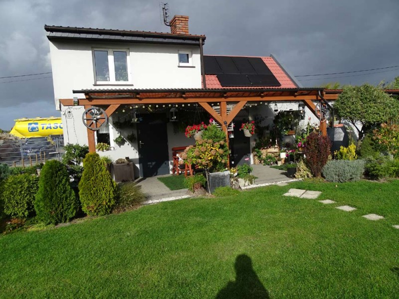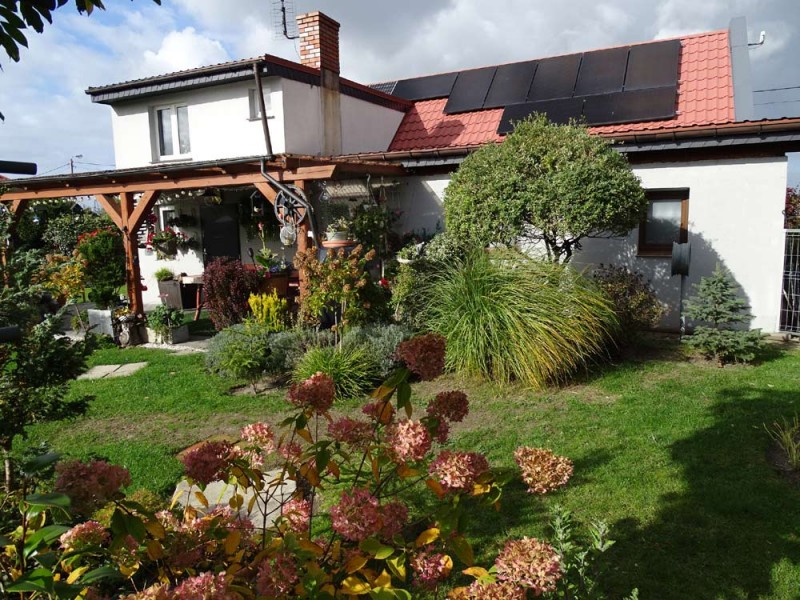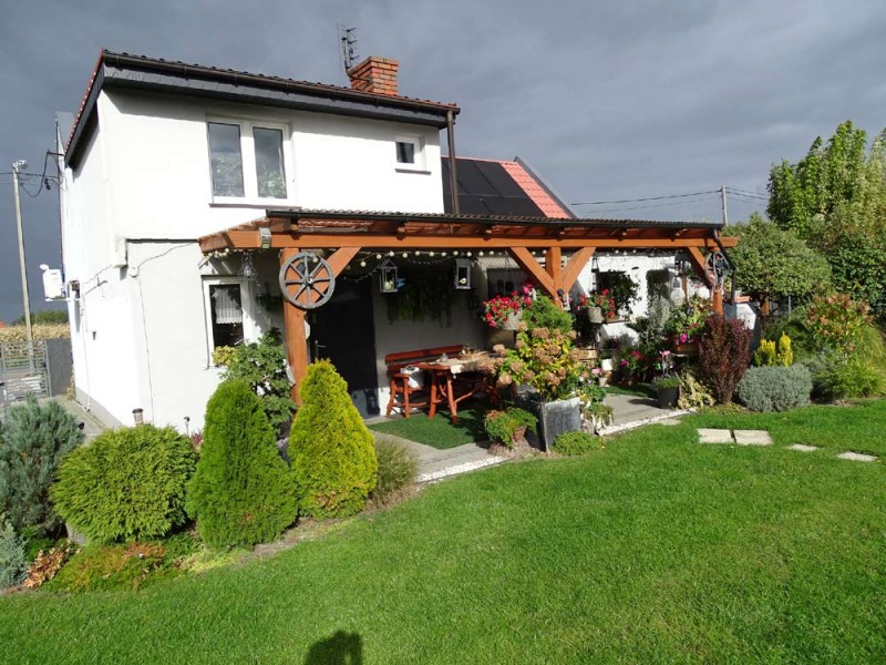 Dom jest zadbany i przytulnie urządzony. Zamontowane są 3 szybowe okna z profili PCV, okna od frontu posiadają rolety zewnętrzne aluminiowe. Wymieniona została instalacja elektryczna, stolarka drzwiowa wewnętrzna wraz z ościeżnicami oraz drzwi wejściowe. Ściany są gipsowane a podłogi zostały wyłożone panelami i kaflami ceramicznymi. Widna kuchnia jest umeblowana. Obie łazienki zostały wykończone w płytkach ceramicznych, posiadają one kabiny prysznicowe. Zainstalowana jest klimatyzacja. Centralne ogrzewanie zasila piec stałocieplny na miał i węgiel, instalacja jest miedziana a grzejniki stalowe. Wodę podgrzewa bojler elektryczny. Dużą korzyść finansową z tytułu zużycia energii elektrycznej daje instalacja fotowoltaiczna o mocy 3,8 kW zamontowana na dachu budynku.