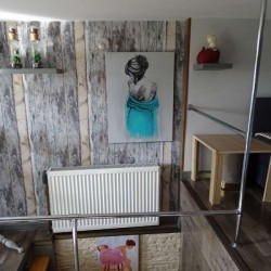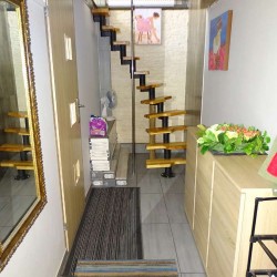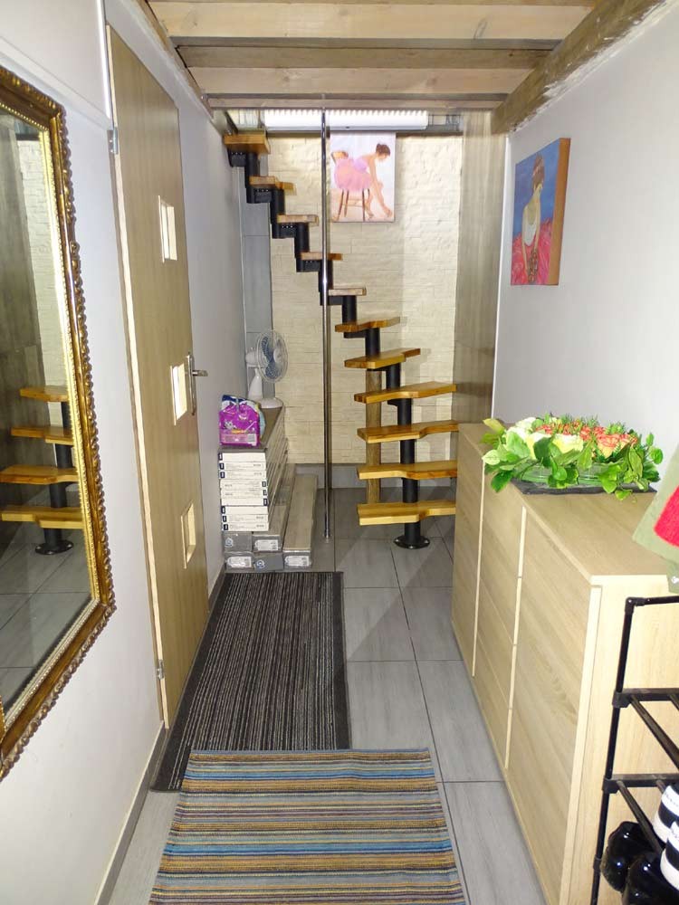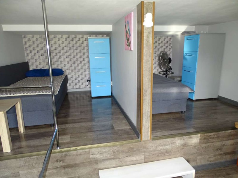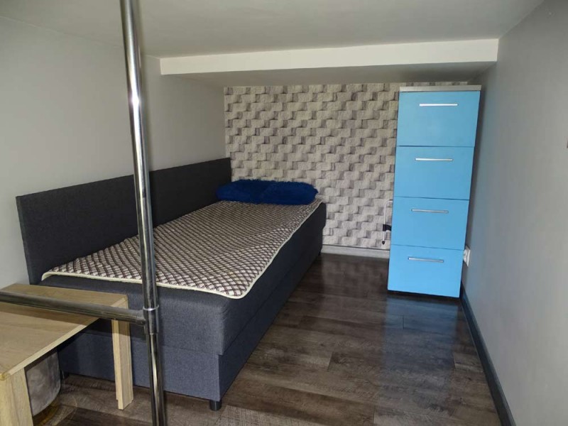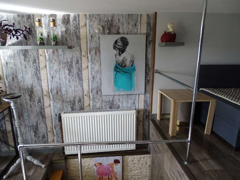 Na parterze o powierzchni 80 m2 znajdują się trzy pokoje, kuchnia, łazienka, wiatrołap, korytarz, kotłownia oraz zadaszona altana o powierzchni około 20 m2. Piętro o powierzchni 22 m2 obejmuje pokój oraz łazienkę. Obie te kondygnacje łącza zabiegowe schody, których stopnie wykonano z drewna.