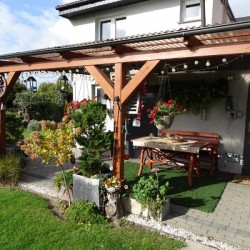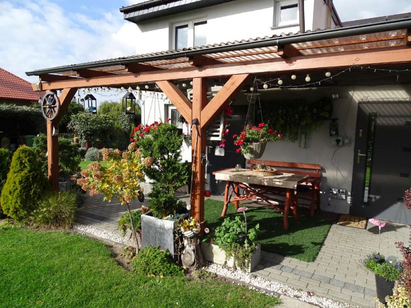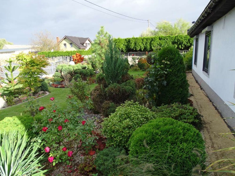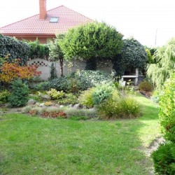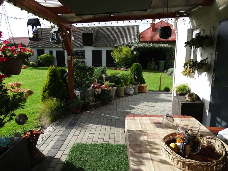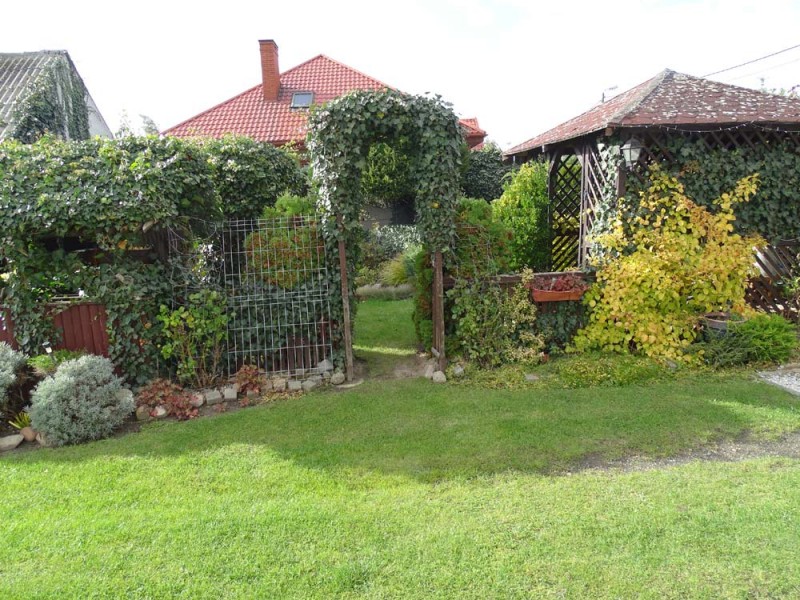 Działka jest ogrodzona i pięknie zagospodarowana, urządzony został ogród z różnorodnymi nasadzeniami drzew, bylin i krzewów ozdobnych. Na terenie posesji znajduje się murowany budynek gospodarczy składający się z trzech pomieszczeń oraz strychu. Wygospodarowano również miejsce na wypoczynek i rekreację i tutaj mamy do dyspozycji zadaszoną altankę z betonowym grillem.