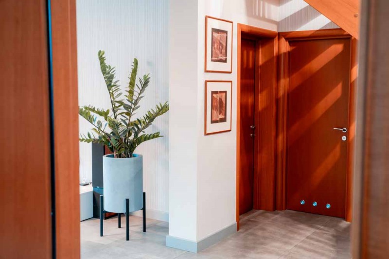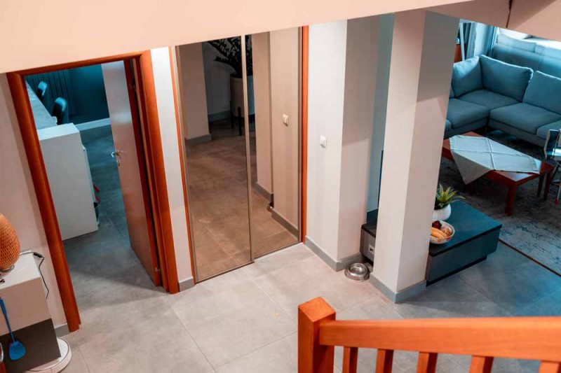 Dom jest w bardzo dobrym stanie technicznym i nie wymaga żadnych nakładów finansowych, został nowocześnie i przytulnie urządzony. Na parterze znajduje się salon z kominkiem i wyjściem do ogrodu zimowego, widna kuchnia ze spiżarnią, pokój gościnny, łazienka, wiatrołap, schowek oraz garaż. Piętro obejmuje trzy sypialnie, łazienkę, garderobę, holl oraz balkon. Obie te kondygnacje łączy przestrzenna klatka schodowa, schody zostały wykonane z drewna.
