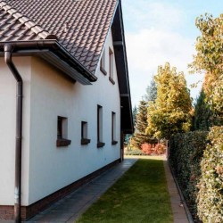 Przedstawiamy Państwu ofertę sprzedaży domu, który położony jest w spokojnej, zachodniej dzielnicy Ostrowa Wielkopolskiego, w rejonie ulicy Poniatowskiego. Jest to willowe osiedle domów jednorodzinnych. Nieruchomość gruntowa o powierzchni działki 1164 m2 jest zabudowana wolnostojącym, jednorodzinnym budynkiem mieszkalnym, którego powierzchnia użytkowa wynosi 200,50 m2. Dom ten jest parterowy, z poddaszem użytkowym, wybudowany został w 2001 roku a materiałem budowy jest pustak ceramiczny porotherm Wieneberger o szerokości 42 centymetrów. Pustak ten jest fabrycznie wypełniony wełną mineralną, co łączy funkcję konstrukcyjną i termoizolacyjną w jednym elemencie. Nie wymaga on docieplenia. Wielospadowy dach na konstrukcji drewnianej został pokryty dachówką ceramiczną.