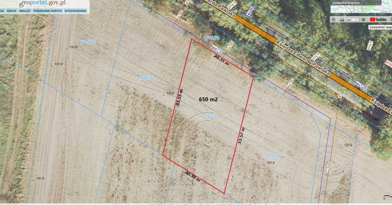 Działka została objęta miejscowym planem zagospodarowania przestrzennego- MN -tereny zabudowy mieszkaniowej jednorodzinnej. Działka znajduje się przy drodze wewnętrznej, front jej usytuowany jest od strony południowej. Wymiary: szerokość około 20 metrów, głębokość około 33 metry. Media: przy działce - woda oraz kanalizacja, w ulicy asfaltowej zaprojektowana jest sieć gazowa oraz energetyczna.