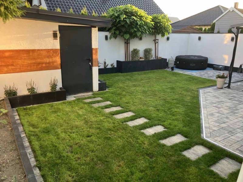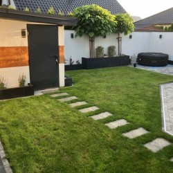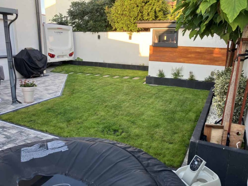 - System automatycznego nawadniania ogrodu (zraszacze wysuwane z ziemi firmy Hunter).