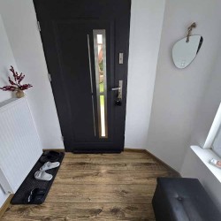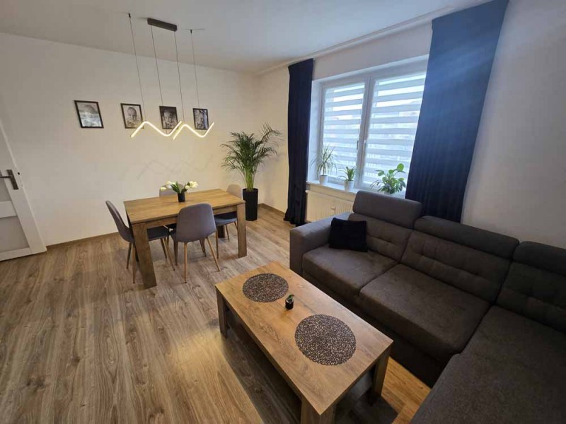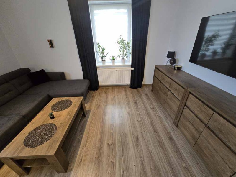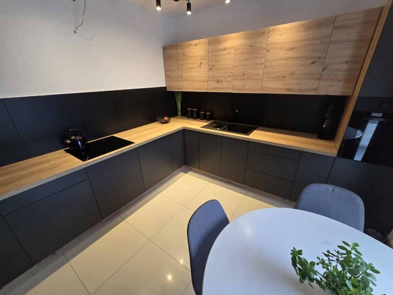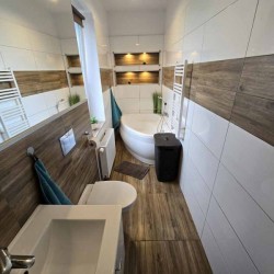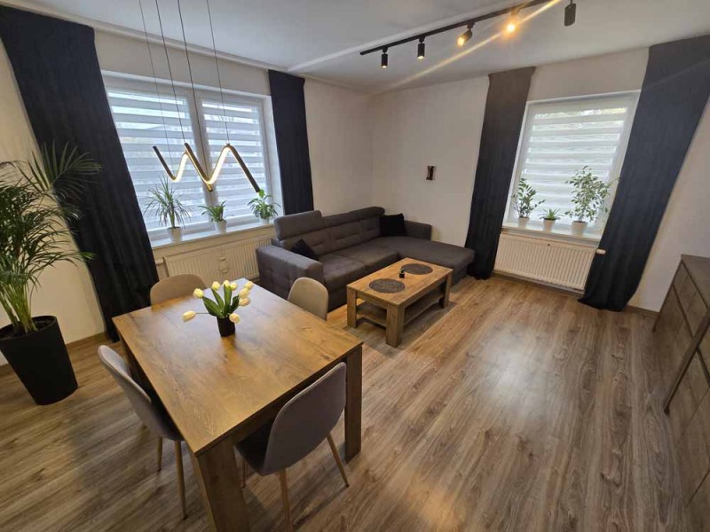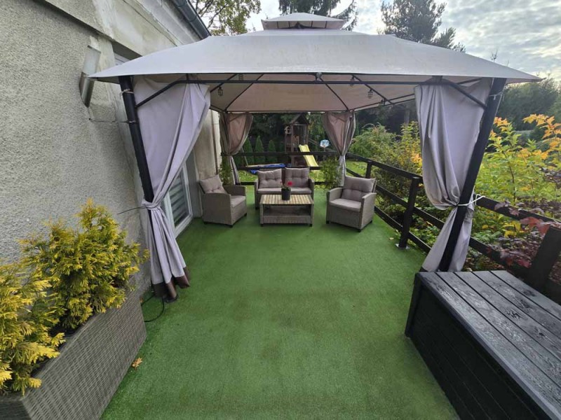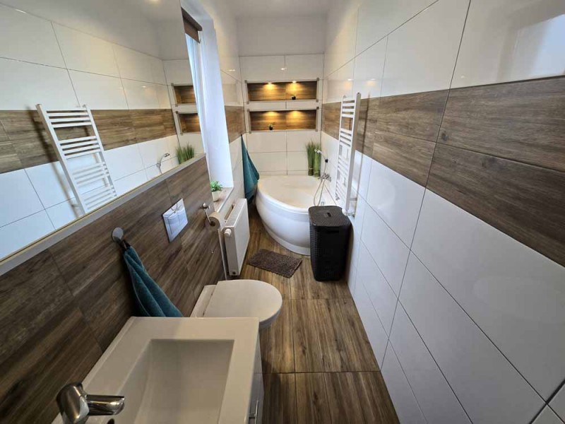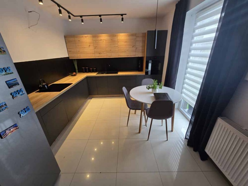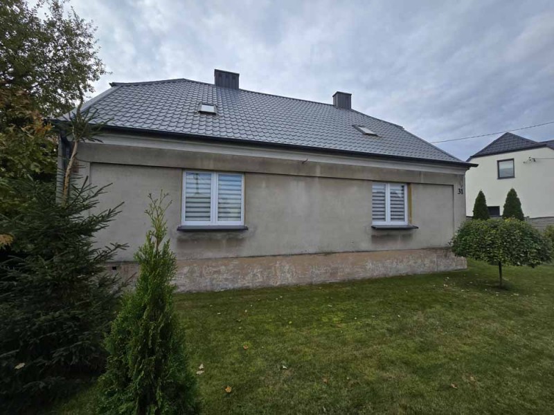 Wnętrz domu jest po generalnym remoncie, został on nowocześnie i przytulnie urządzony. Zamontowane są okna z profili PCV a na podłogach znajdują się panele i wielkoformatowe kafle ceramiczne. Wymieniona została instalacja elektryczna, wodno kanalizacyjna, stolarka drzwiowa wewnętrzna wraz z ościeżnicami oraz drzwi wejściowe. Ściany zostały pokryte gładzią gipsową. Duża widna kuchnia została umeblowana meblami na wymiar, wyposażono ją w sprzęt gospodarstwa domowego. Łazienka z oknem jest wykończona w płytkach ceramicznych i tutaj mamy do dyspozycji wannę narożną, geberit i umywalkę wraz szafką. Centralne ogrzewanie zasila piec na eko groszek, instalacja jest wymieniona a grzejniki są stalowe. Cena obejmuje zabudowę trwałą - meble kuchenne wraz ze sprzętem agd. Pozostałe umeblowanie jest w opcji.