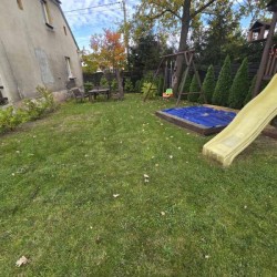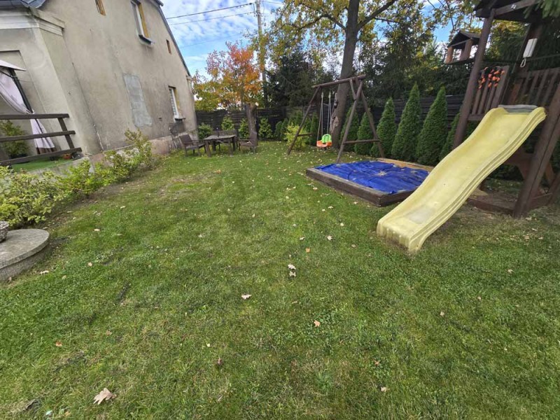 Działka, której powierzchnia wynosi 1280 m2 jest ogrodzona i zagospodarowana, jej front został ogrodzony płotem kutym na podmurówce. Na terenie posesji znajduje się garaż o powierzchni 16 m2, wybudowany z płyt betonowych. Nieruchomość została przyłączona do sieci energetycznej, wodnej i kanalizacyjnej, istnieje możliwość sieci gazowej.