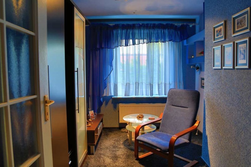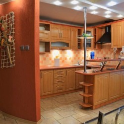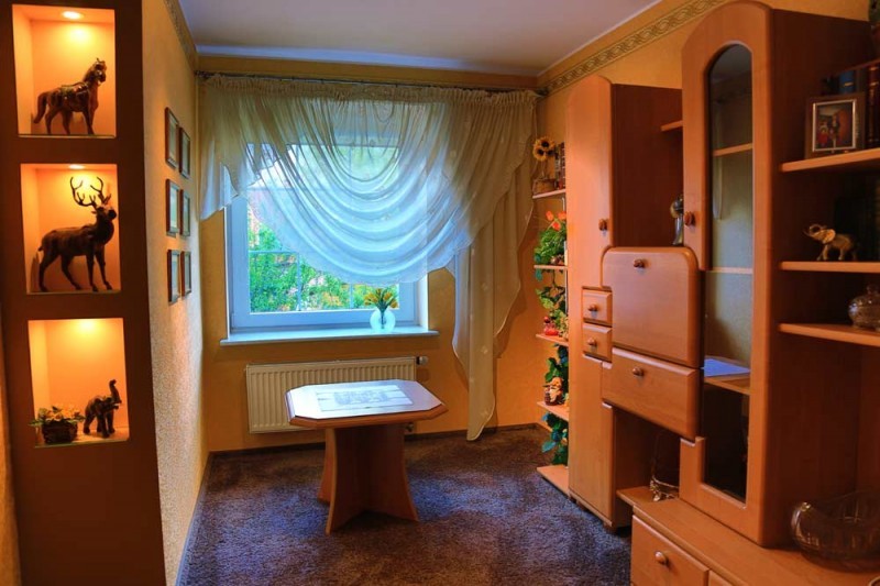 Budynek posiada powierzchnię 92 m2, składa się z pokoju dziennego połączonego z aneksem kuchennym, 3 sypialni, wc, łazienki oraz pomieszczenia gospodarczego. Kuchnia została umeblowana i wyposażona w sprzęt AGD. Pokoje w mieszkaniu są umeblowane. Centralne ogrzewanie oraz wodę ciepłą zasila kocioł gazowy II-funkcyjny, dodatkowym źródłem ciepła jest kominek znajdujący się w salonie.