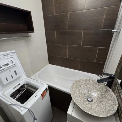 Mieszkanie posiada powierzchnię 60 m2, składa się z trzech pokoi, kuchni, łazienki, wc. korytarza oraz balkonu. Kuchnia została umeblowana i wyposażona w sprzęt AGD. Pokoje w mieszkaniu są częściowo umeblowana. Łazienkę wykończono płytkami ceramicznymi i wyposażono w pralkę, wannę oraz umywalkę wraz z szafką. Centralne ogrzewanie oraz wodę ciepłą zasila ciepłociąg miejski.