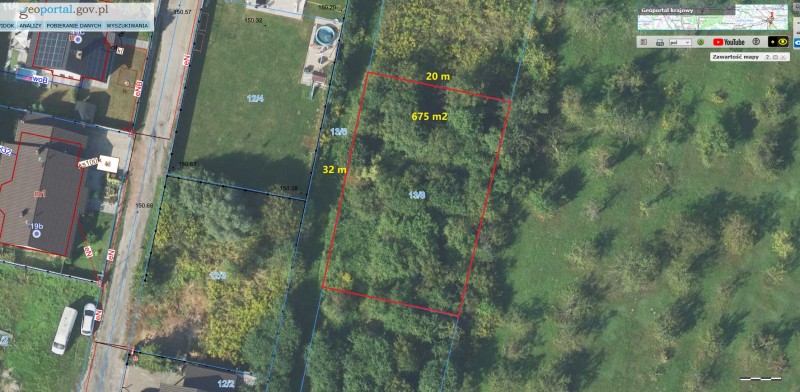 - pow. 675 m2, szerokość około 32 metry, głębokość około 20 metrów - cena 95.000,00 zł,