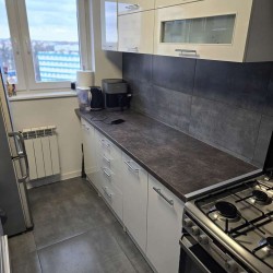 Mieszkanie jest po remoncie, zostało przytulnie urządzone. Zamontowane są okna z profili PCV z roletkami wewnętrznymi a na podłogach znajdują się panele i kafle ceramiczne. Ściany zostały pokryte gładzią gipsową. Kuchnia jest umeblowana meblami na wymiar, wyposażono ją w sprzęt gospodarstwa domowego - płytę gazową, piekarnik elektryczny, lodówkę i pochłaniacz pary. Łazienkę z toaletą wykończono w płytkach ceramicznych, tutaj mamy do dyspozycji wannę, pralkę automatyczną i umywalkę wraz z szafką. Centralne ogrzewanie zasila ciepłownia miejska a wodę podgrzewa terma gazowa. Grzejniki zostały wymienione na aluminiowe. Cena obejmuje pełne umeblowanie mieszkania wraz ze sprzętem agd.