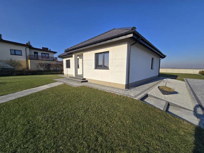 Przedstawiamy Państwu ofertę domu, który położony jest w cichej i spokojnej okolicy, w miejscowości Józefów w gminie Raszków. Nieruchomość gruntowa o powierzchni działki ok. 1500 m2 (do wydzielenia geodezyjnego) m2 jest zbudowana wolnostojącym, jednorodzinnym budynkiem mieszkalnym, którego powierzchnia użytkowa wynosi 109,80 m2. Dom ten jest parterowy, wybudowany został w 2025 roku a materiałem budowy jest pustak ceramiczny Porotherm. Mury konstrukcyjne zostały docieplone zewnętrznie styropianem i pokryte tynkiem szlachetnym. Kopertowy dach na konstrukcji drewnianej, został pokryty dachówką ceramiczną. Strop jest systemowy firmy Teriva.