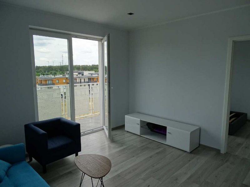 Mieszkanie położone jest na czwartym piętrze budynku, który wyposażony jest w windę, jest usytuowane od strony wschodniej i północnej. Układ pomieszczeń zaprojektowany został w sposób funkcjonalny a materiały użyte do wykończenia wnętrza są wysokiej jakości. Wewnątrz do dyspozycji mamy pokój dzienny z aneksem kuchennym, sypialnię, łazienkę, przedpokój oraz balkon.
