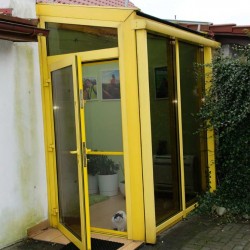 Dodatkowym atutem jest stylowy, przeszklony pokój, idealny jako gabinet, miejsce do relaksu lub pracownia. Można do niego wejść zarówno z wnętrza domu, jak i bezpośrednio z ogrodu.