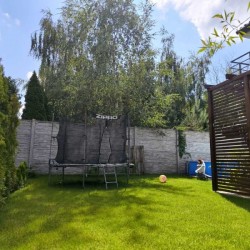 Na parterze mamy do dyspozycji salon z kominkiem i wyjściem do ogrodu, w pełni umeblowaną i wyposażoną w sprzęt gospodarstwa domowego otwartą kuchnię, łazienkę, toaletę wiatrołap,schowek oraz garaż z pomieszczeniem gospodarczym. Piętro obejmuje 3 osobne sypialnie, garderobę łazienkę z wanną i prysznicem, przedpokój i balkon. Za pomocą wysuwanych schodów mamy dostęp do trzeciej kondygnacji - nieużytkowego pomieszczenia na poddaszu.